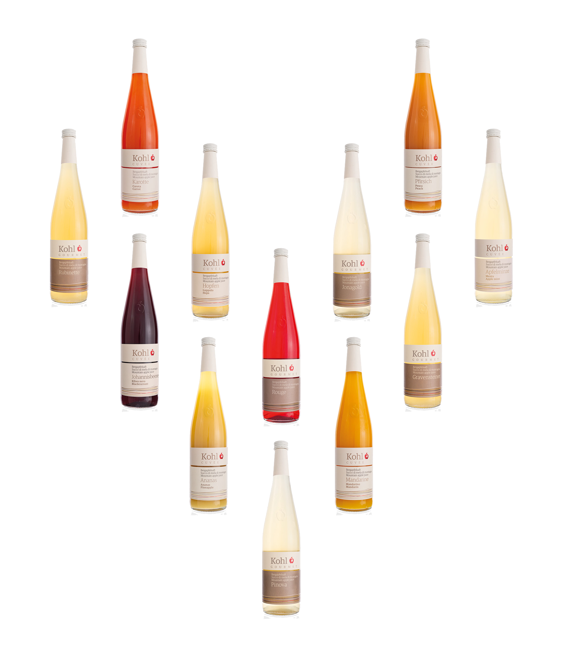 A 1.000 metri sul livello del mare, sul Renon in Alto Adige, produciamo succhi di mela di montagna naturali: monovarietali, cuvée a base di succo di mela di montagna e ingredienti complementari, oppure con estratti di aromi suggestivi e gli esclusivi succhi dei nostri Grand Cru. Le nostre mele: nate, coltivate e spremute a 1.000 metri sul livello del mare. Solo poche varietà di mele entrano in considerazione per la nostra gamma. Il nostro criterio più importante: sono adatte alla montagna? Si adattano alla nostra posizione, al clima e al terreno? Il terroir è determinante per il gusto e il carattere. Siamo intransigenti per quanto riguarda la qualità di mele, bacche, verdure e fiori per i nostri succhi. Ingredienti di alta qualità sono essenziali per alimenti di alta qualità. Per la nostra produzione di succhi si qualificano solo mele completamente mature, raccolte a mano dai nostri frutteti. Le migliori mele sono la nostra base. A ciò si aggiunge l'esperienza pluriennale: sappiamo come far sprigionare al meglio gli aromi delle singole varietà di mele.
